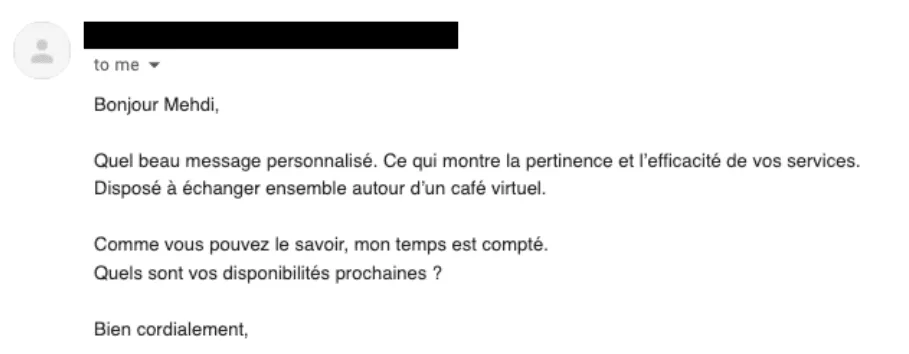 Je me suis alors dit : "Il faut personnaliser." J’ai donc adapté mes emails à chaque prospect.