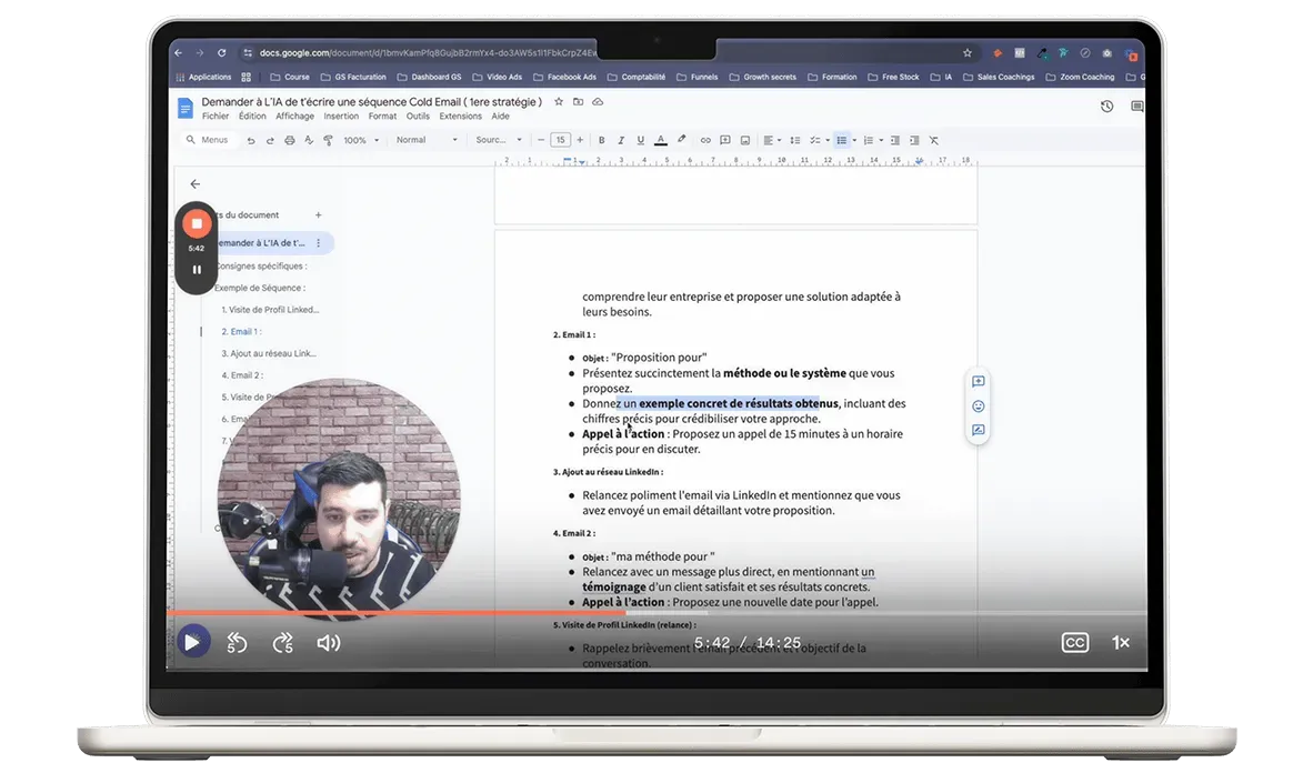 Suivre notre plan d’action clé en main, pour dupliquer nos processus, templates, scripts et prompts afin de lancer votre machine de prospection, sans frais supplémentaires.